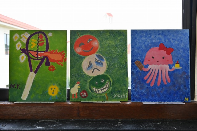 中学1・年生、2年生、高校3年生が、美術の授業で制作した作品です。