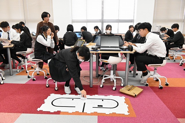 「情報Ⅰ」の授業 (高1) 2025年11月17日 今日の学校 10~11月 高校1年生が「情報Ⅰ」の授業で、プログラミングを学びました。 microbitを使用して、配膳ロボットのプログラミングを行いました。 一覧に戻る