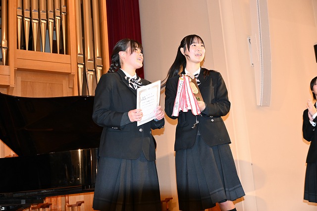 コンクールは、学年別クラス対抗で行われ、各クラスが課題曲と自由曲の2曲を披露しました。