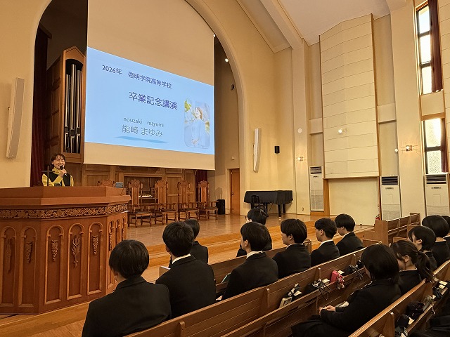 2月4日(水) 高校3年生を対象とした卒業講演会がランバスチャペルで開かれました。啓明女学院高校卒業の先輩、能崎まゆみさんを講師にお招きし、「チャレンジすること」をテーマに、お話を聴かせていただきました。
